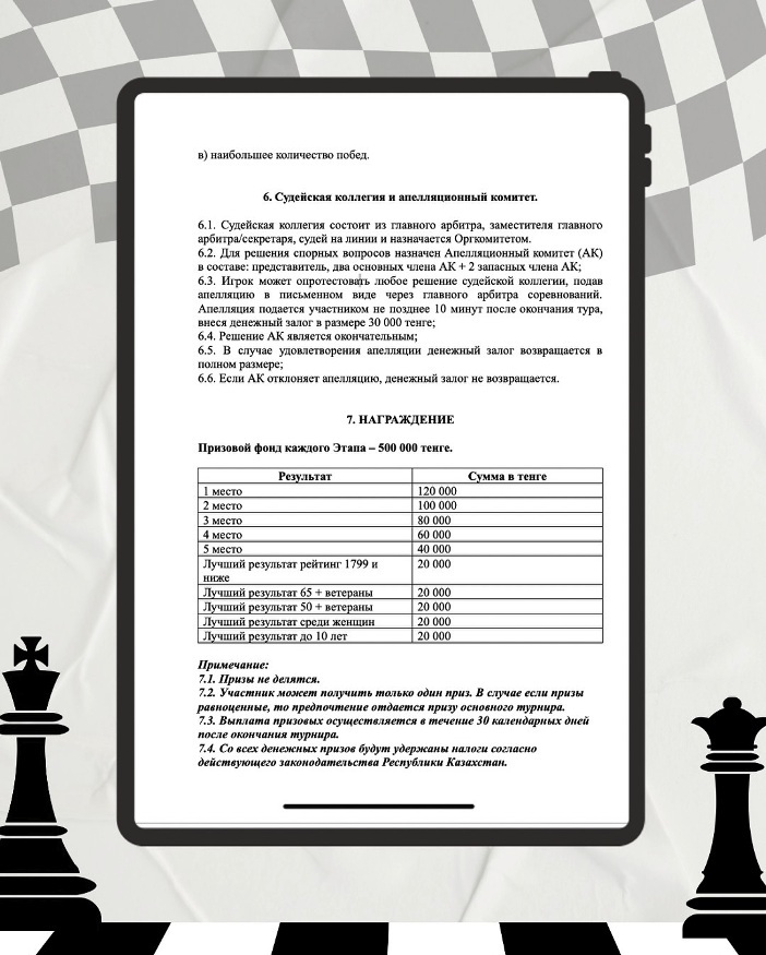 Место проведения: г. Алматы, ул. Кабанбай батыра, 71 — шахматный клуб «Дебют»