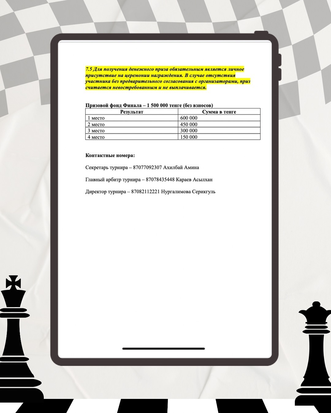 Призовой фонд: 500 000 тг